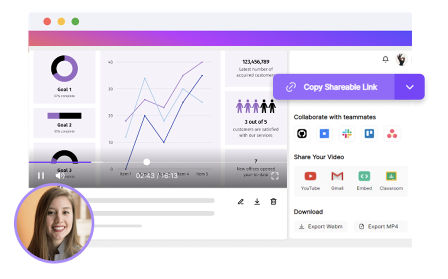 This is a great tool that lets you record your screen and webcam and turn the recordings into video messages that can be shared instantly with your friends. This tool is needed by you and anyone who works in a dynamic team. You can record from a browser tab, webcam, or a full desktop view.